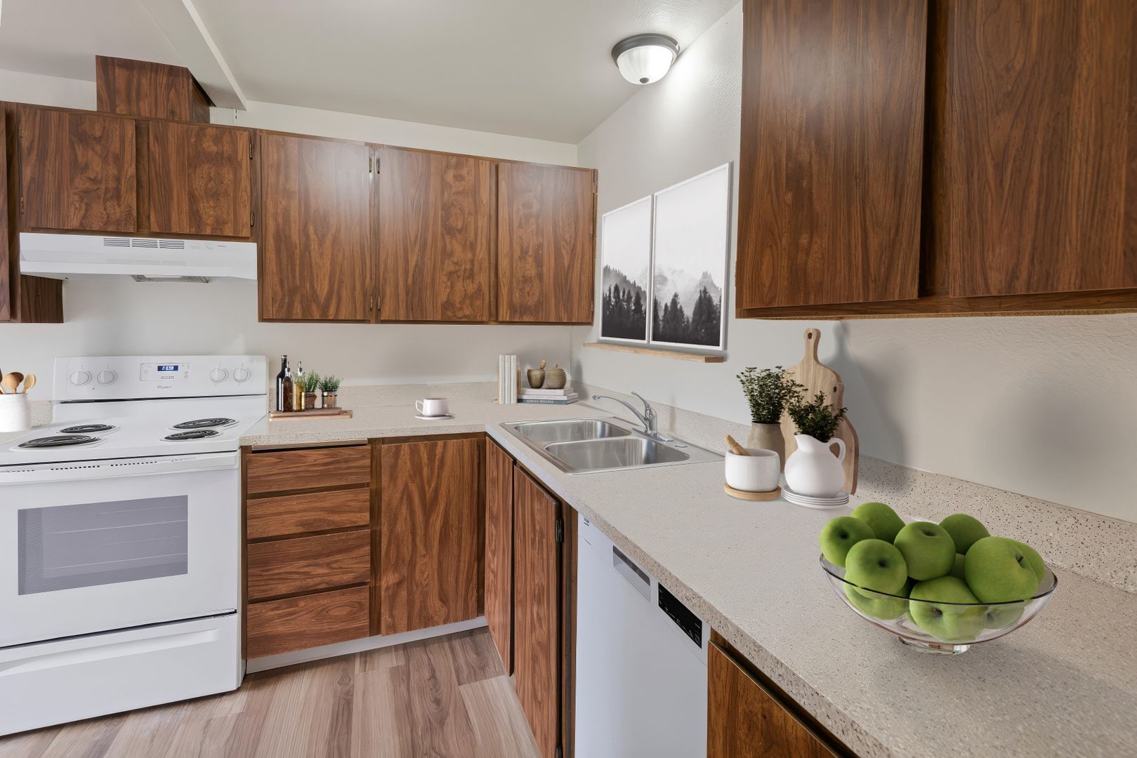 Discover your perfect home in this charming 2-bedroom apartment featuring classic wood-grain cabinetry and abundant natural light. Enjoy the convenience of in-unit full-size laundry and free on-site parking. Located just minutes from town and local shops, this pet-friendly community includes an on-site pet area for your furry friends. Experience comfort and convenience in one delightful package!