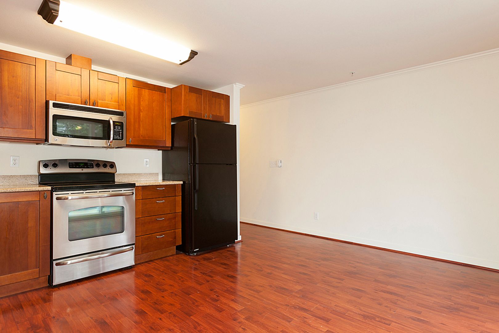 Experience luxury living in this stunning 1-bedroom apartment. Enjoy the breathtaking views from your private balcony. The cherry red hardwood flooring and cabinetry add a touch of elegance. Relax in the tiled bathroom with a luxurious tub. The modern stainless steel appliances complete this perfect home.
